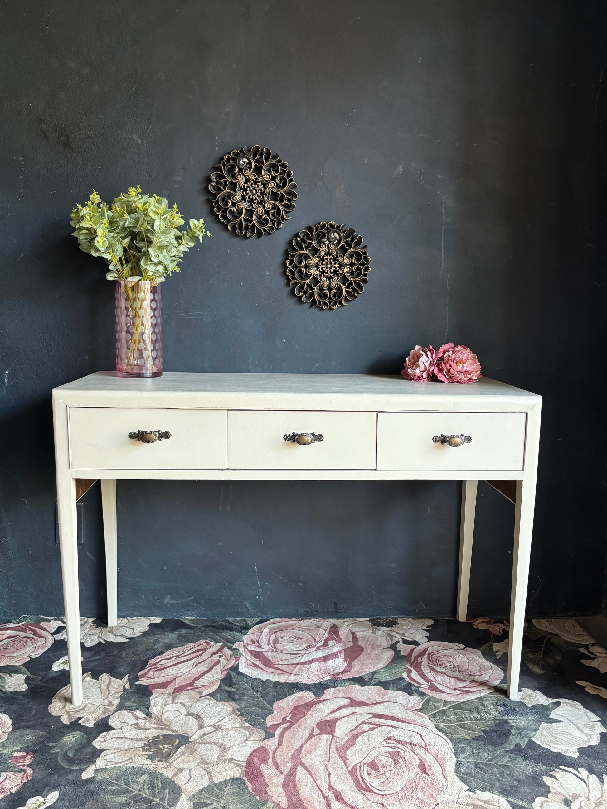 A refined blend of timeless design and modern simplicity, this Beige Three-Drawer Console Table brings understated elegance to any interior. Hand-finished in a soft neutral tone, it offers the perfect balance of function and form — ideal for an entryway, living room, or bedroom. Its graceful lines and vintage-inspired handles create a piece that’s both versatile and sophisticated.