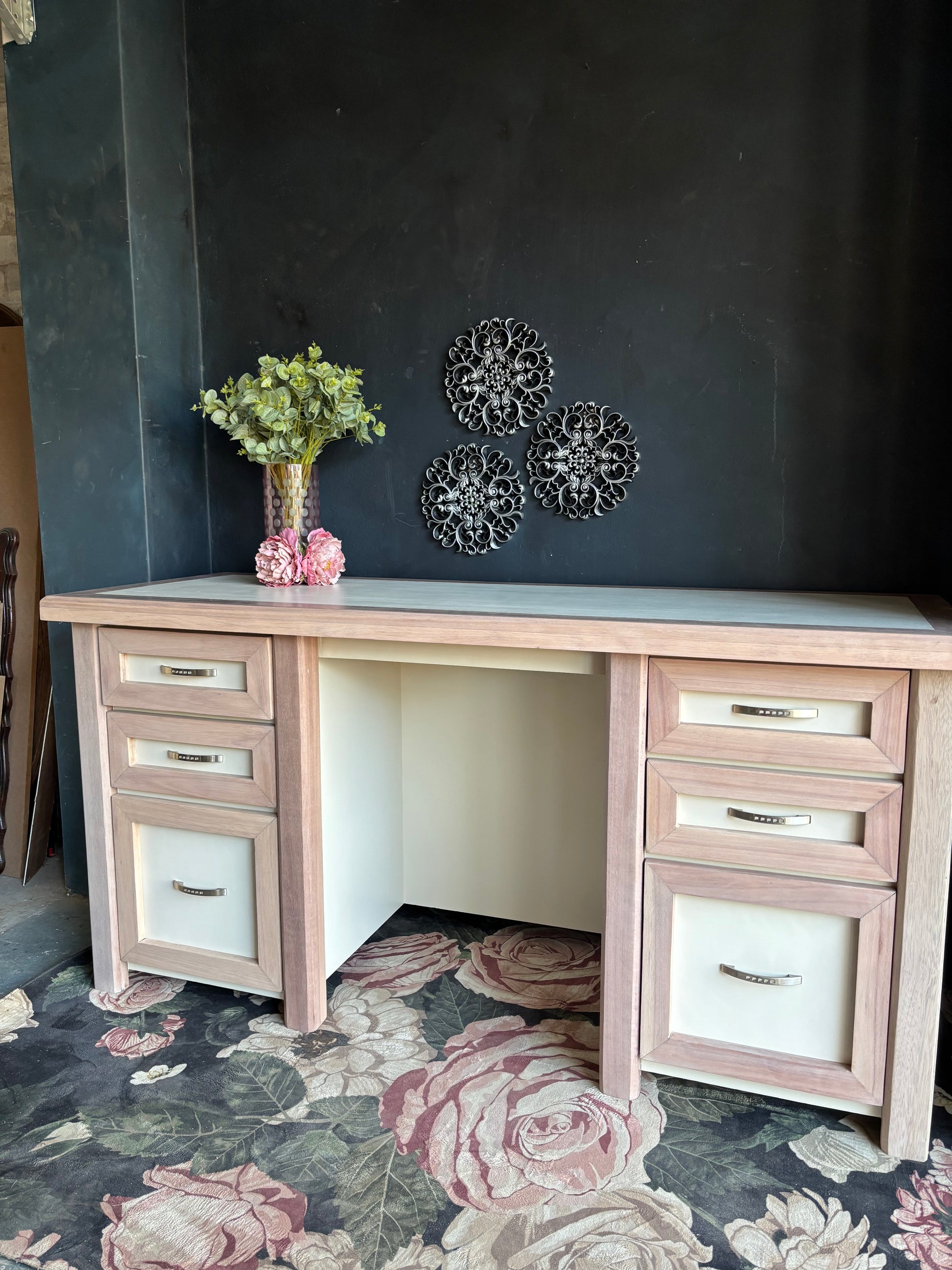 Elegant Dual-Pedestal Desk – Soft Beige & Washed Saligna Finish