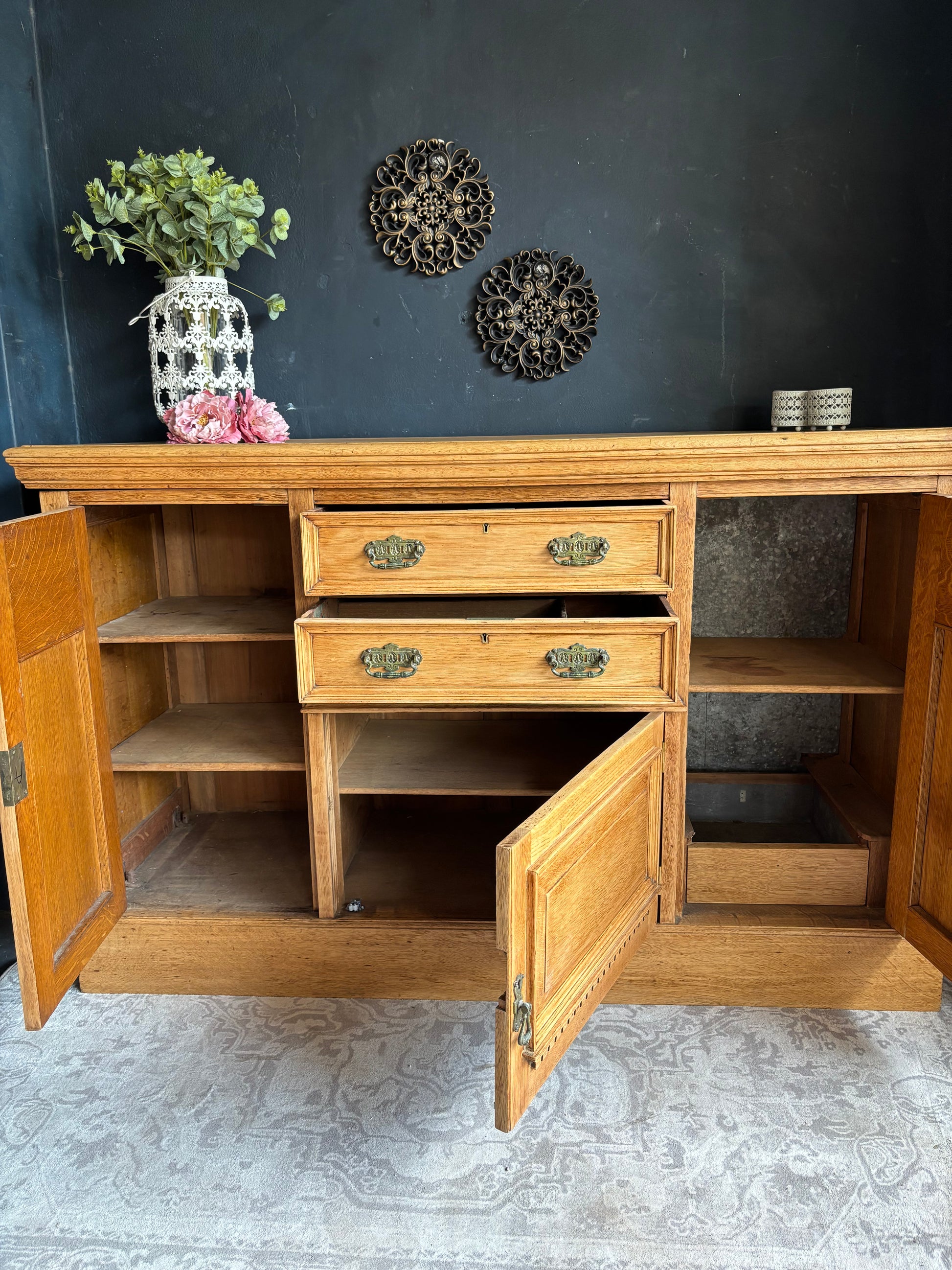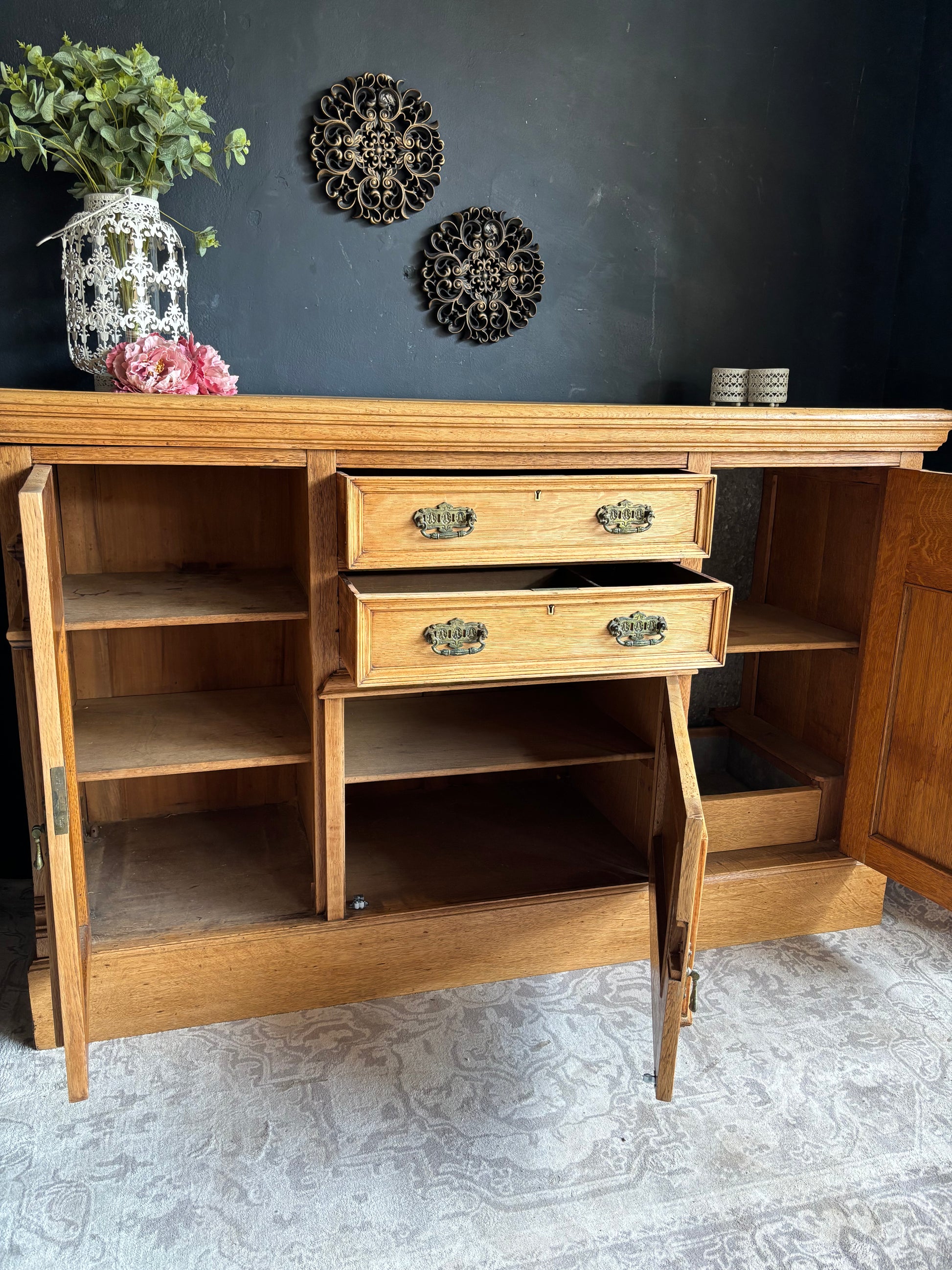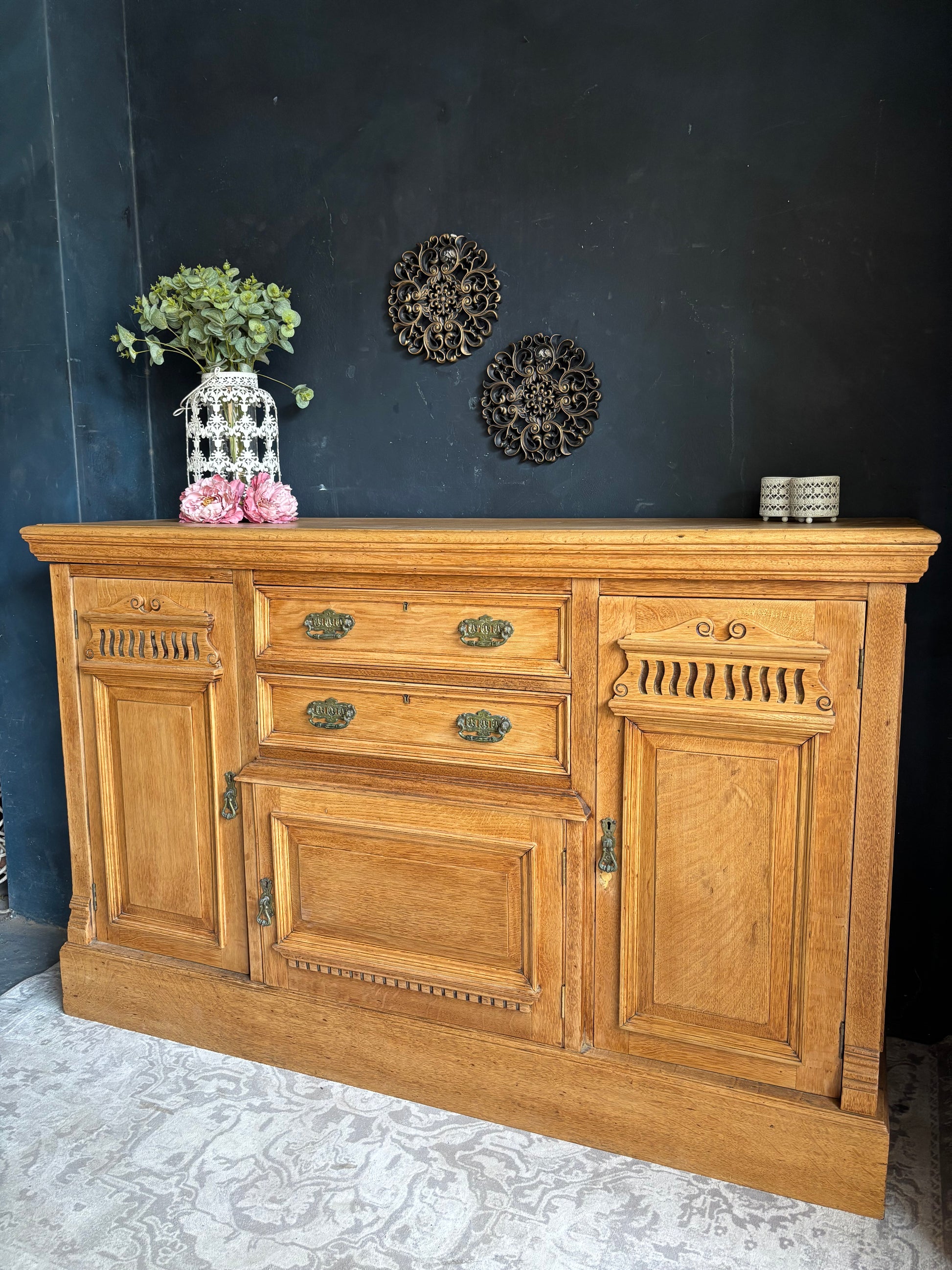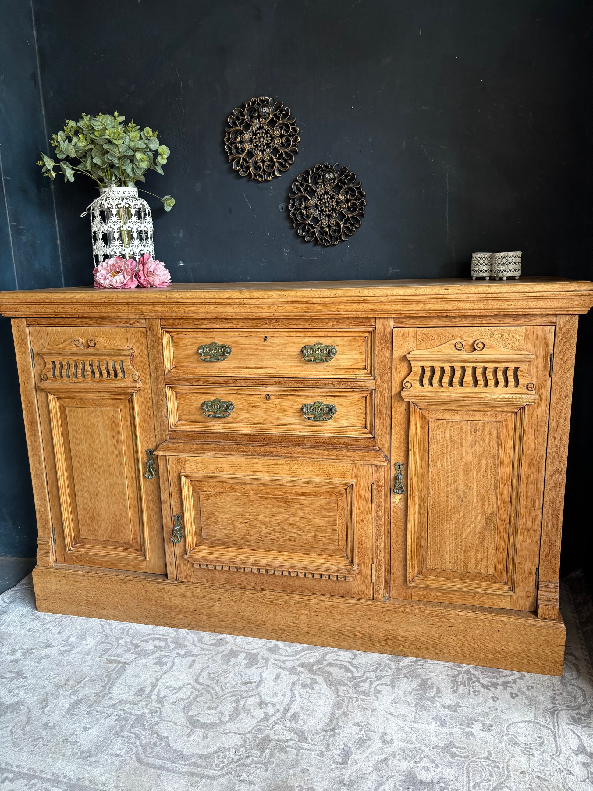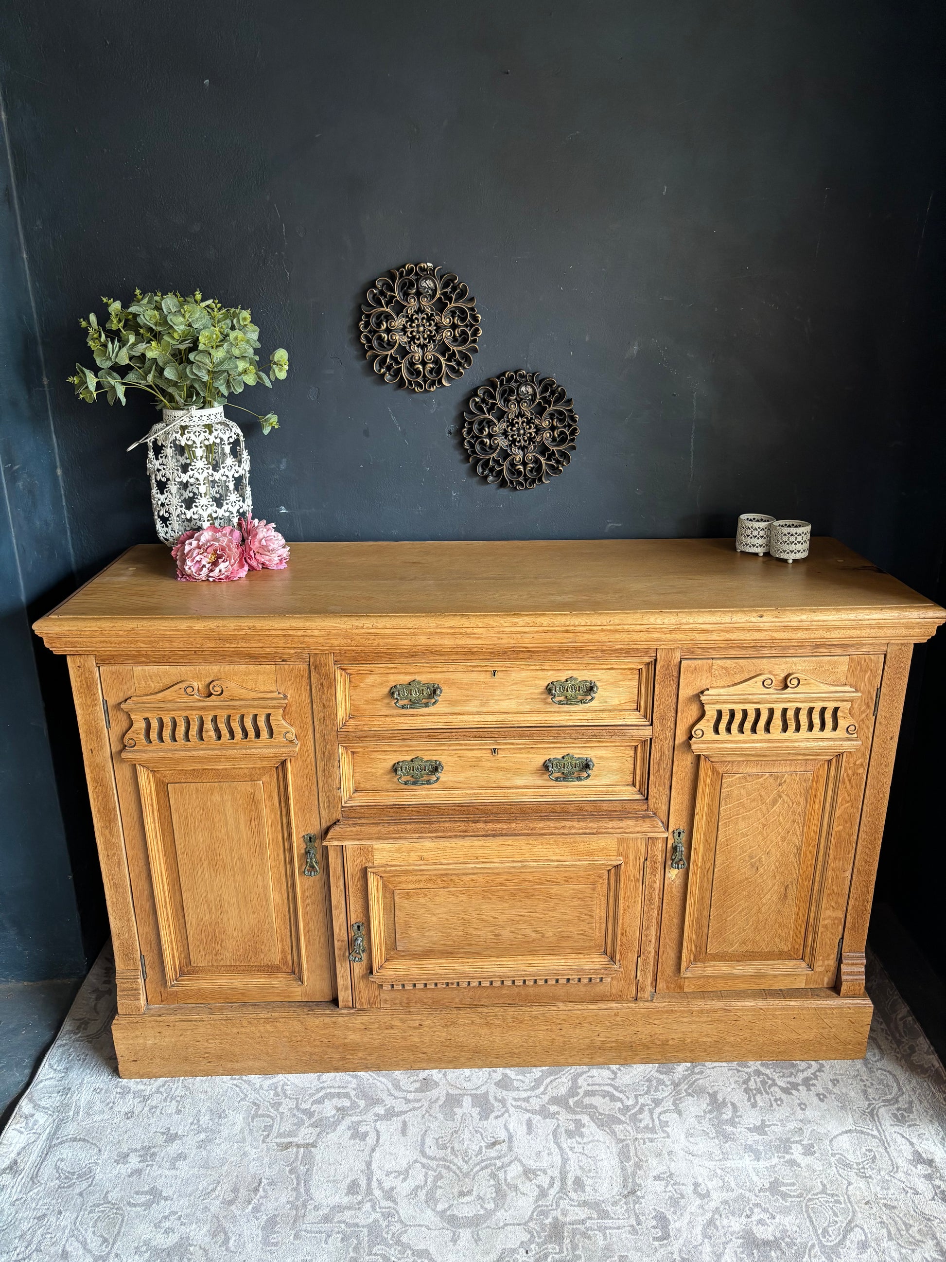 Solid Oak Sideboard with Carved Detail