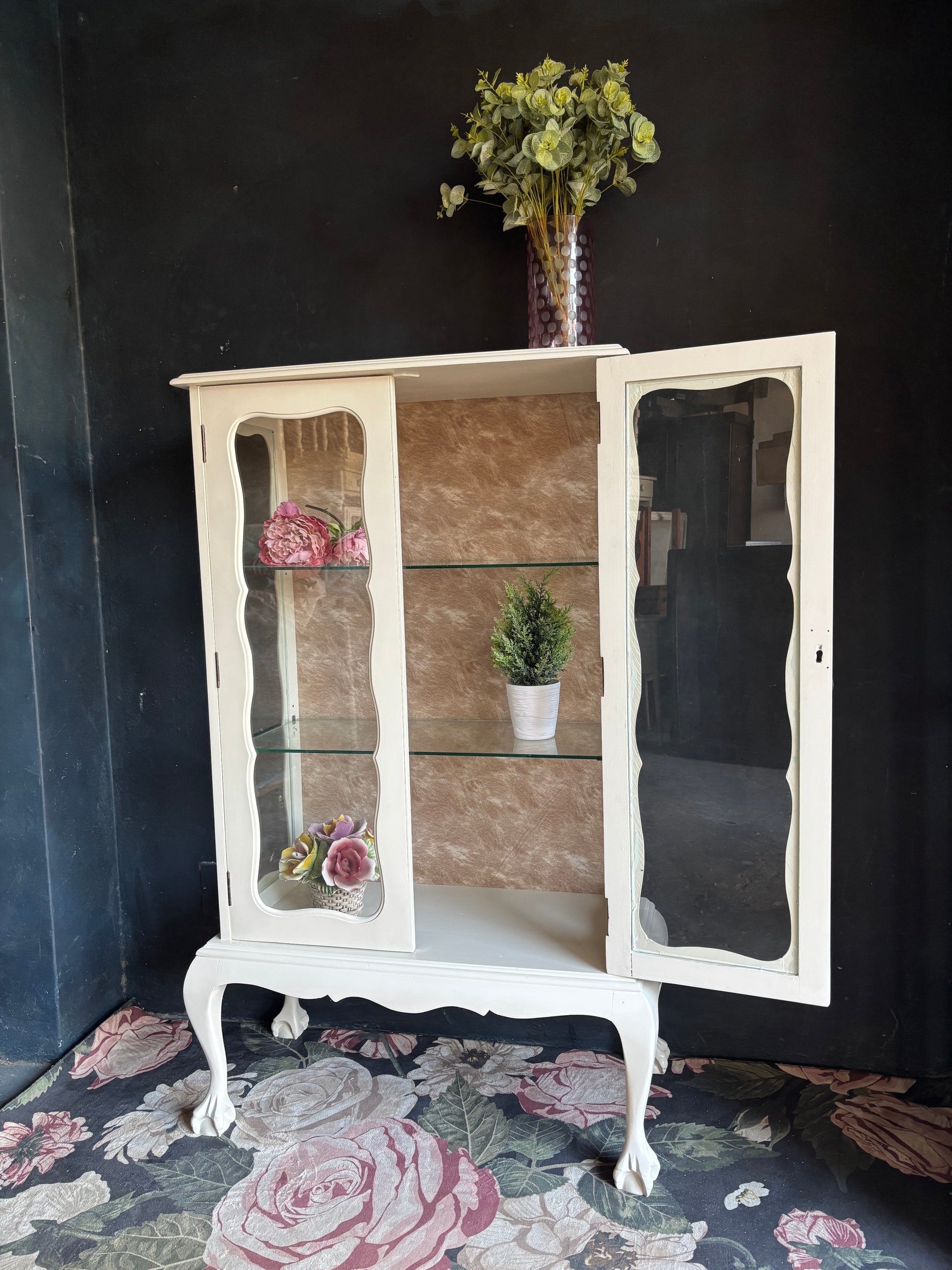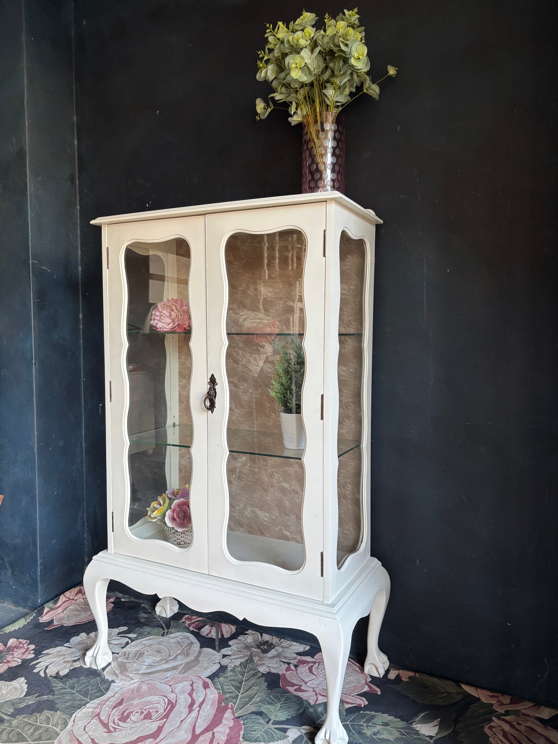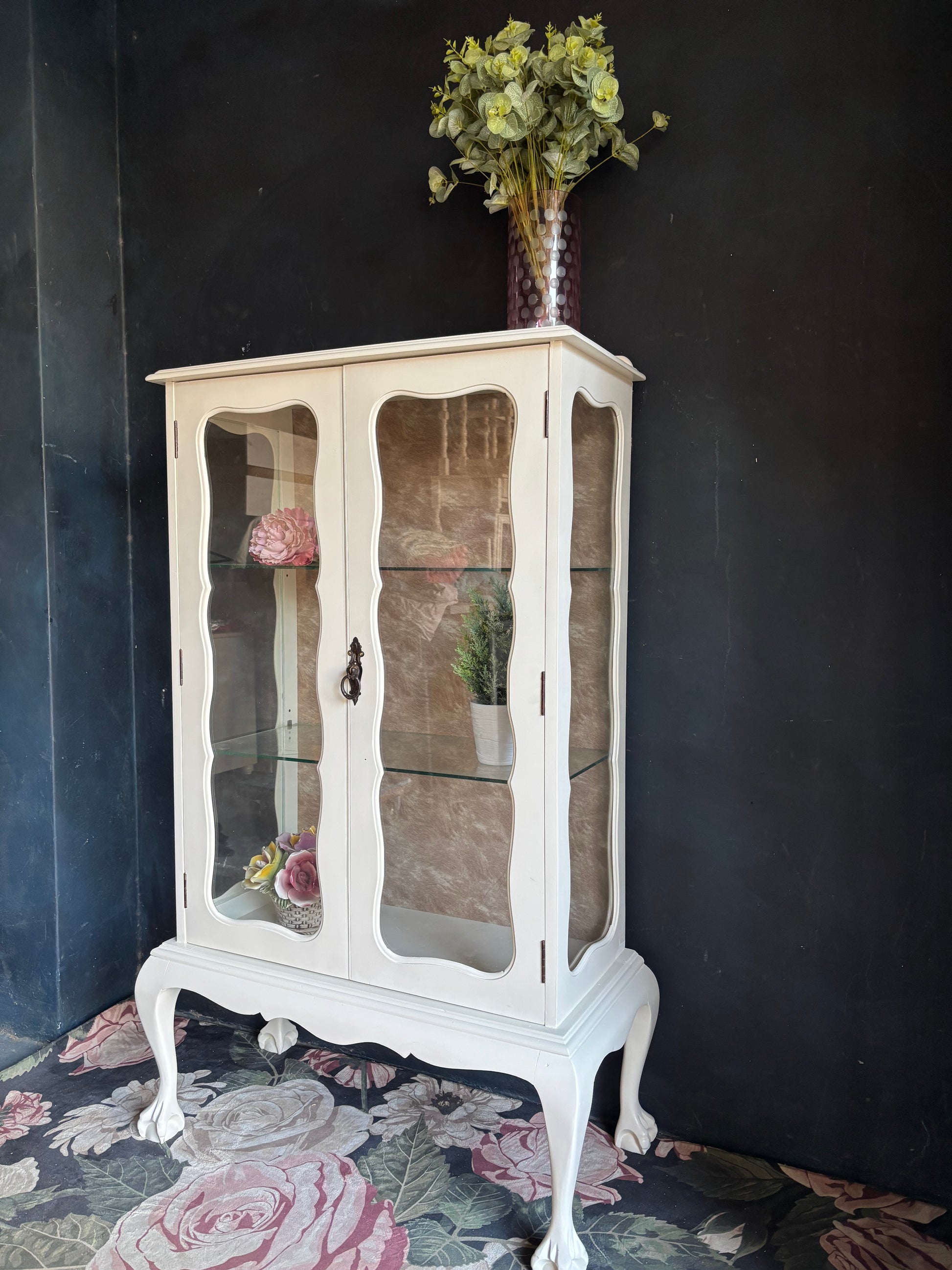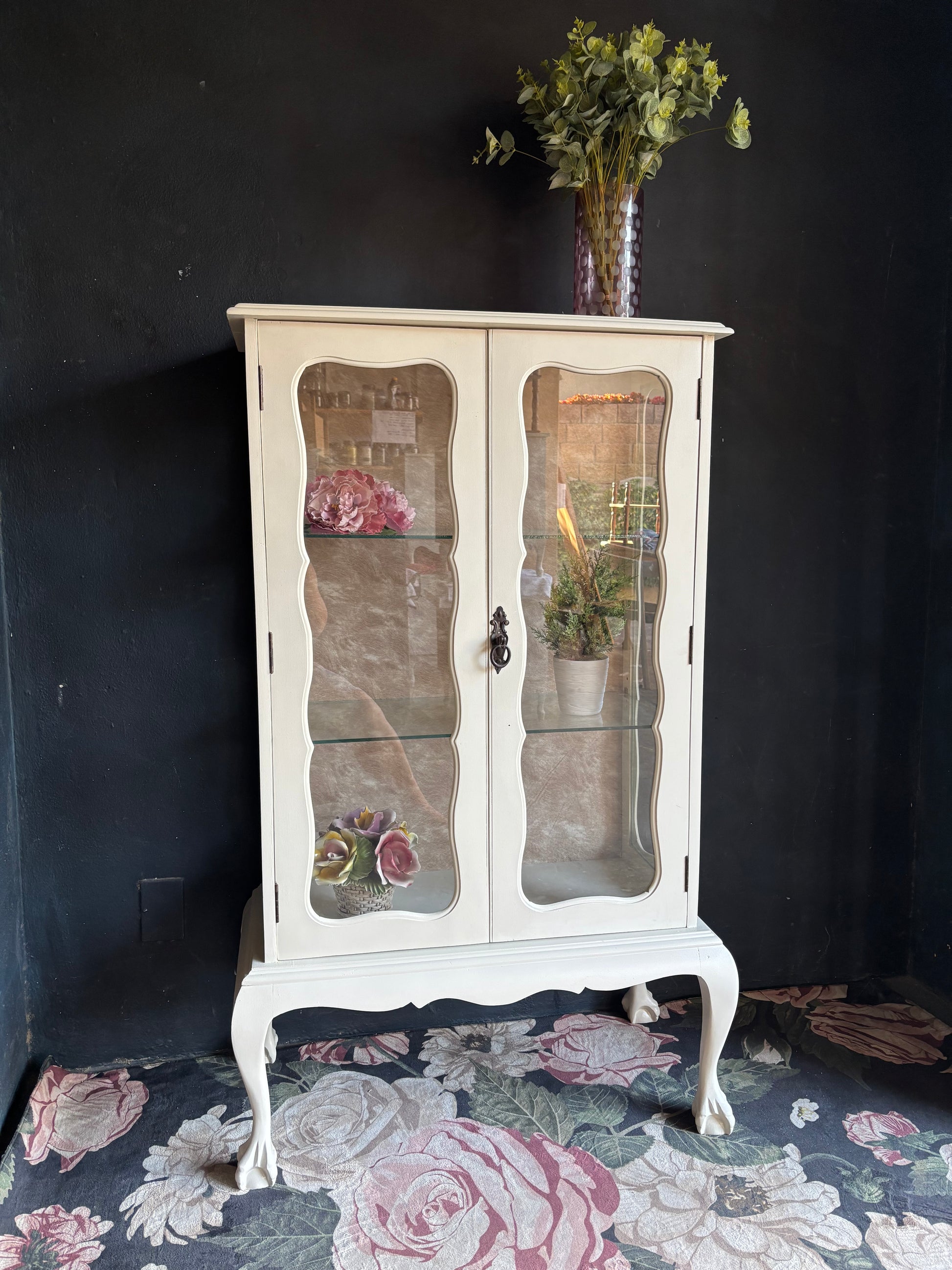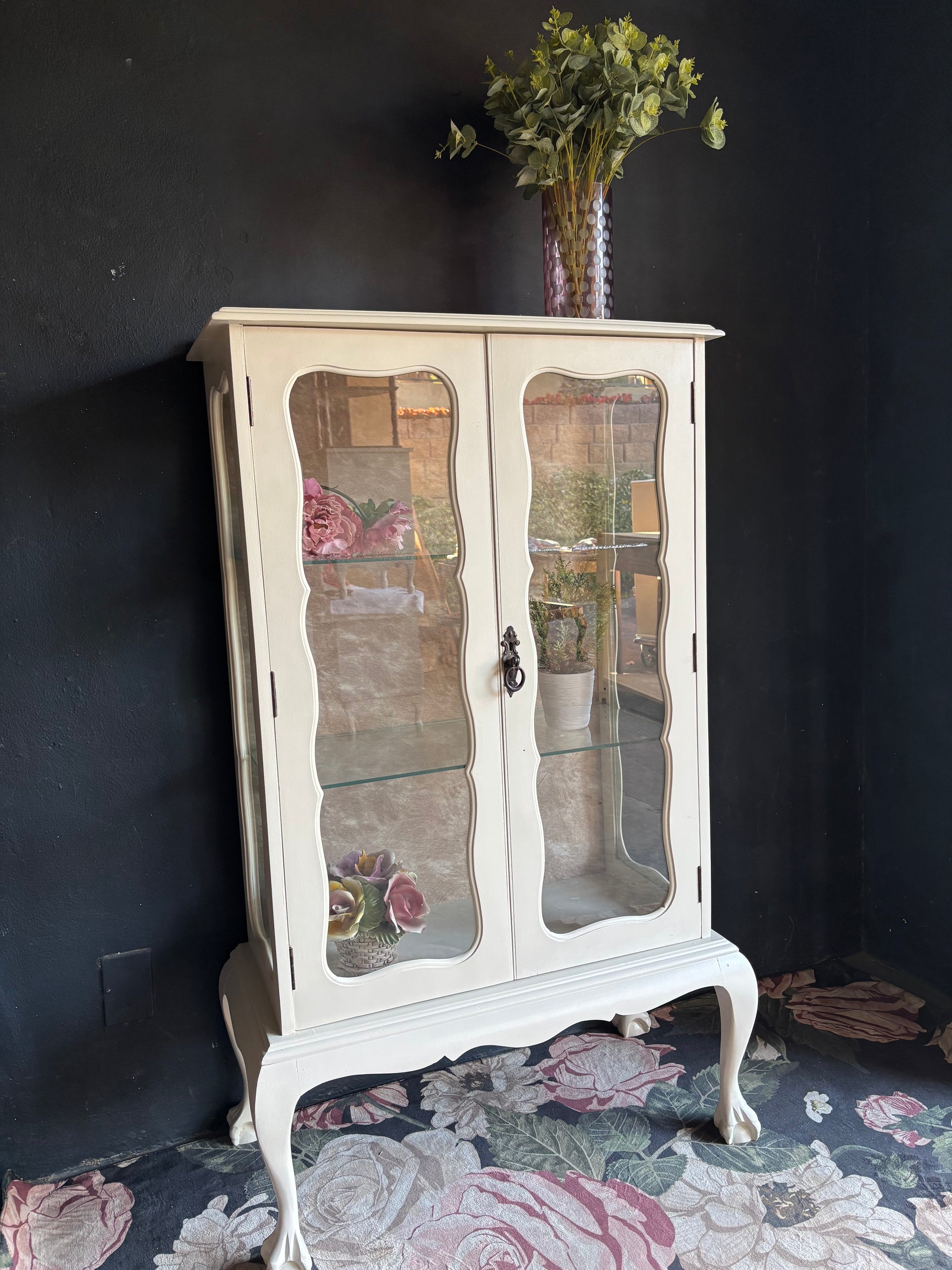 Vintage French Style Cream Glass Display Cabinet